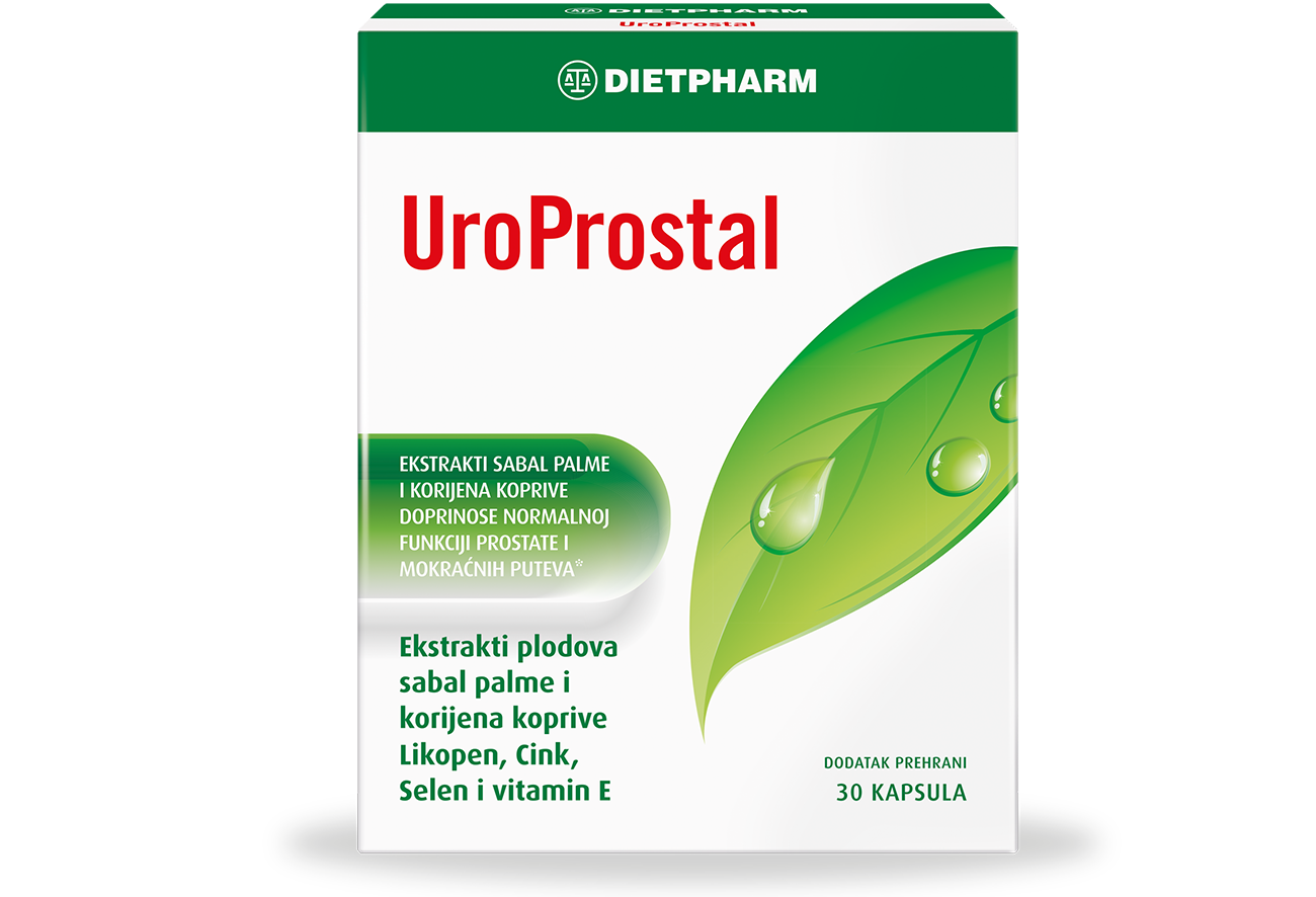 Одбрани состојки за здравјето на вашата простата! Екстрактите од сабал палма и корен од коприва во капсулите УроПростал придонесуваат за нормална функција на простатата и уринарниот тракт. Додаток во исхраната со екстракти од плод на сабална палма и корен од коприва, ликопен, цинк, селен и витамин Е. За одржување на здравјето на простатата. За нормална функција на уринарниот тракт.