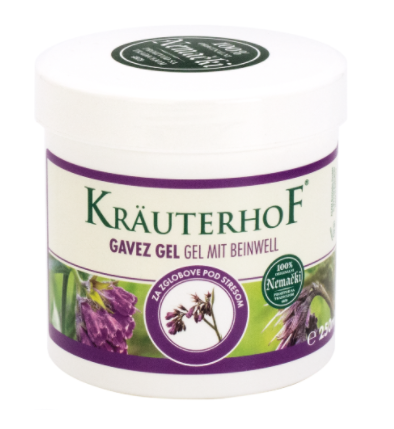 Гелот од гавез помага при оптеретени зглобови, напрегнати и болни мускули, спортски повреди, фузија на 'рбет и коски. Германски квалитет.Гелот од гавез е ефикасен во лекувањето на истегнувања и дислокации. Исто така, гелот или кремот од гавез помага кај ревматски деформитети на зглобовите и глуждовите , често се нарекува германски крем за зглобови. Слушнавме дека гелот од гавез помага и кај 'рбетот, а исто така и кај спортски повреди, често се нанесува кога имате проблеми со колената и посттрауматски состојби. Најдобриот гел од гавез има и исклучителна моќ во забрзувањето на заздравувањето на скршени коски. Гелот или кремот од гавез, како што се нарекува, може да се користи како антиинфламаторно средство, а германската маст од гавез е исто така ефикасна за посекотини, модринки и убоди од инсекти. Ја подобрува епителизацијата, дренажата и регенерацијата на ткивата. Содржина на гел за газа Krauterhof 25% газа.