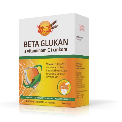 NATURAL WEALTH Beta glukan 20kesi - НАТУРАЛ ВЕЛТ Бета глукан+Ц+цинк, 20кесички
