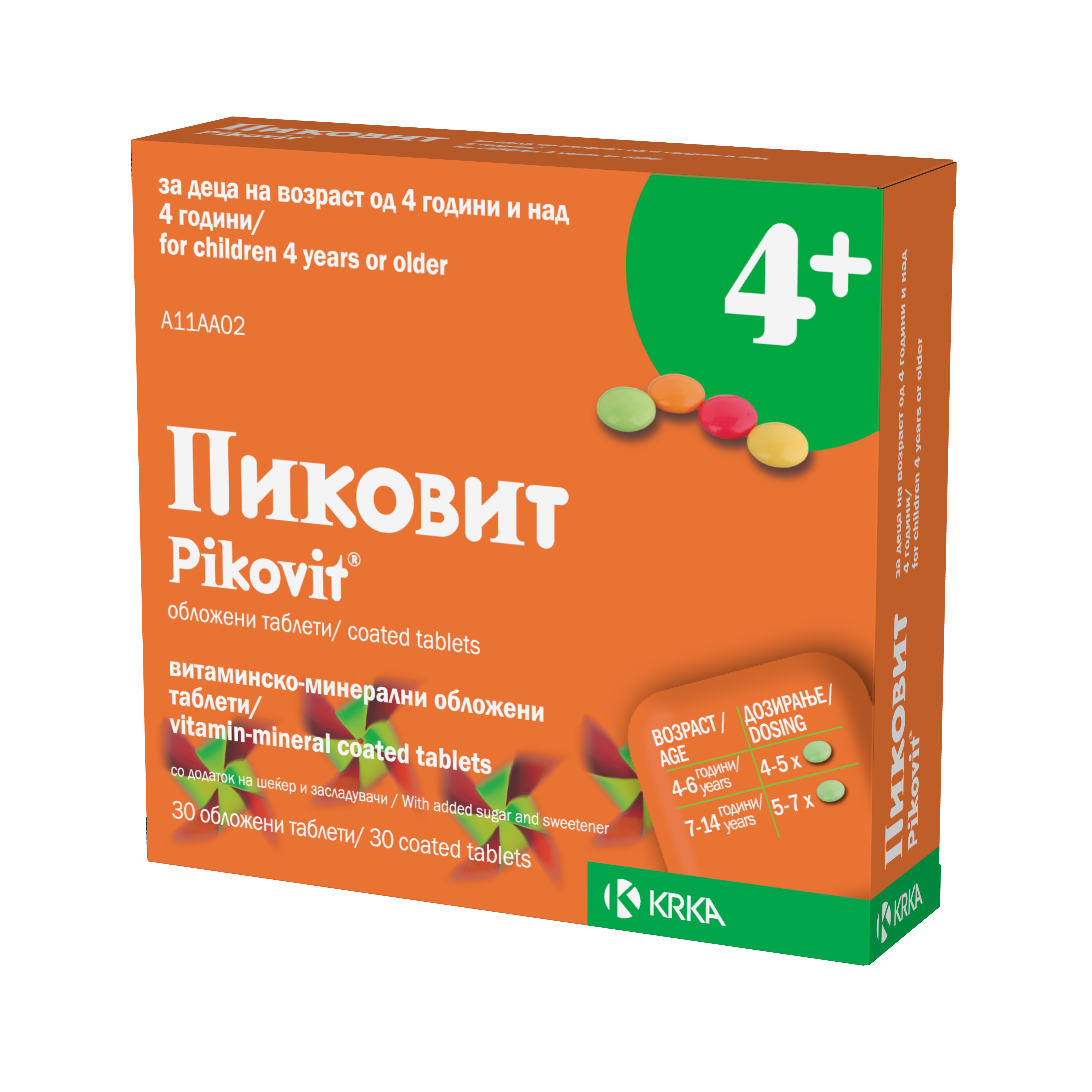витамиПиковит обложените таблети имаат многу пријатен вкус и се наменети за деца: • со намален апетит, • при прекумерен замор, кај деца на училишна возраст, • како додаток по терапија со антибиотици, • како витаминско-минерален додаток во исхраната. Пиковит обложените таблети не се замена за избалансирана и разновидна исхрана. Поради тоа, многу е важно на вашето дете да му обезбедите избалансирана и разновидна исхрана, дури и за време на употребата на Пиковит обложените таблетинско–минерални обложени таблети витамин А, холекалциферол, аскорбинска киселина, тиамин нитрат, рибофлавин, пиридоксин хидрохлорид, цијанокобаламин, никотинамид, фолна киселина, калциум пантотенат, калциум и фосфор.