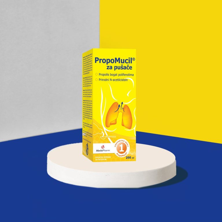 PropoMucil ® за пушачи се препорачува како ефикасен производ во ублажување на симптомите на кашлица кај пушачите. Содржи комбинација од прополис богат со полифеноли, N-ацетилцистеин, мед, бел слез, јаглика и нане, кои помагаат во елиминирањето на секретите, регенерирање на респираторниот епител и олеснување на дишењето. Овој препарат е особено корисен за активни пушачи и за оние кои се обидуваат да се откажат од пушењето. За чисти и бистри бронхии Ја ублажува кашлицата кај пушачите Ги исфрла секретите и го намалува нагонот за кашлање