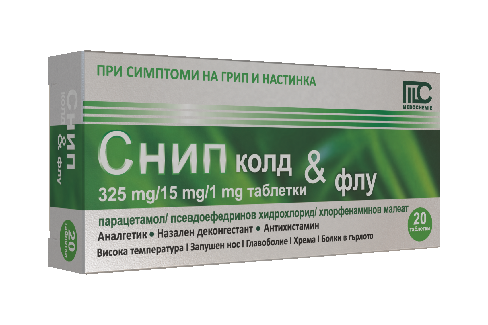 Секоја таблета содржи 325 мг парацетамол, 15 мг псевдоефедрин хидрохлорид и 1 мг хлорфенирамин малеат