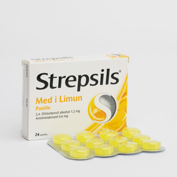 Пастилите Стрепсилс мед и лимон содржат две антисептични состојки кои се користат за третман на грло. Наменети се за симптоматско олеснување при инфекции на уста и грло. Производот е наменет за возрасни, деца над 6 годишна возраст и постари лица Активните состојки се благи антисептици кои ги уништуваат бактериите кои предизвикуваат инфекции на устата и грлото. Се употребуваат на тој начин што се остава пастилата полека да се растопи во устата со што се овозможува постојано и директно делување на активните состојки во засегнатата регија и истовремено помага во навлажнување и омекнување на болното место. Ова помага во ослободување од болката и непријатноста при инфекции на устата и грлото.