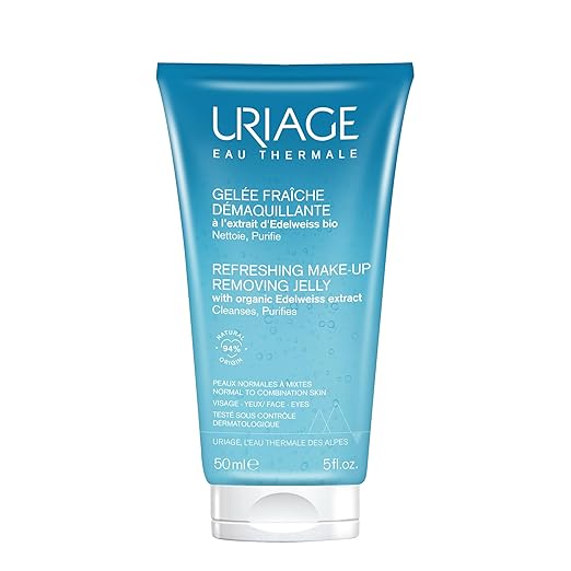Освежувачкиот гел за отстранување шминка нежно чисти и отстранува шминка од лицето и очите. Овој нов производ создава вистинско чувство на свежина со својата единствена текстура. Идеален за комбинирана до мрсна кожа! Кожата е чиста, мека и мазна. Оваа формула содржи 94% состојки од природно потекло. 1. ОТСТРАНУВА ШМИНКА, ЧИСТИ, ПРОЧИСТУВА Неговата ултра нежна база за чистење ги елиминира сите нечистотии од лицето за прочистена кожа. 2. ГО НАМАЛУВА ЧУВСТВОТО НА ЗАТЕГНАТОСТ Збогатен со термална вода Uriage и органски екстракт од рунолист, овој гел ќе обезбеди чувство на свежина, а воедно ќе ја смири вашата кожа.